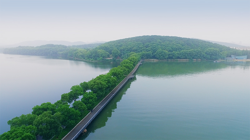 武漢航拍武漢東湖綠道湖山道楓多山無人機航拍照片。