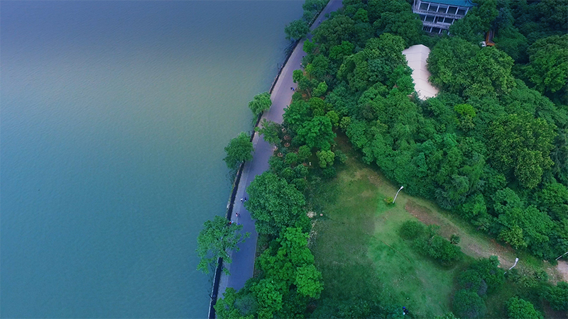 武漢航拍武漢東湖綠道湖山道碧浪凌無人機航拍照片.